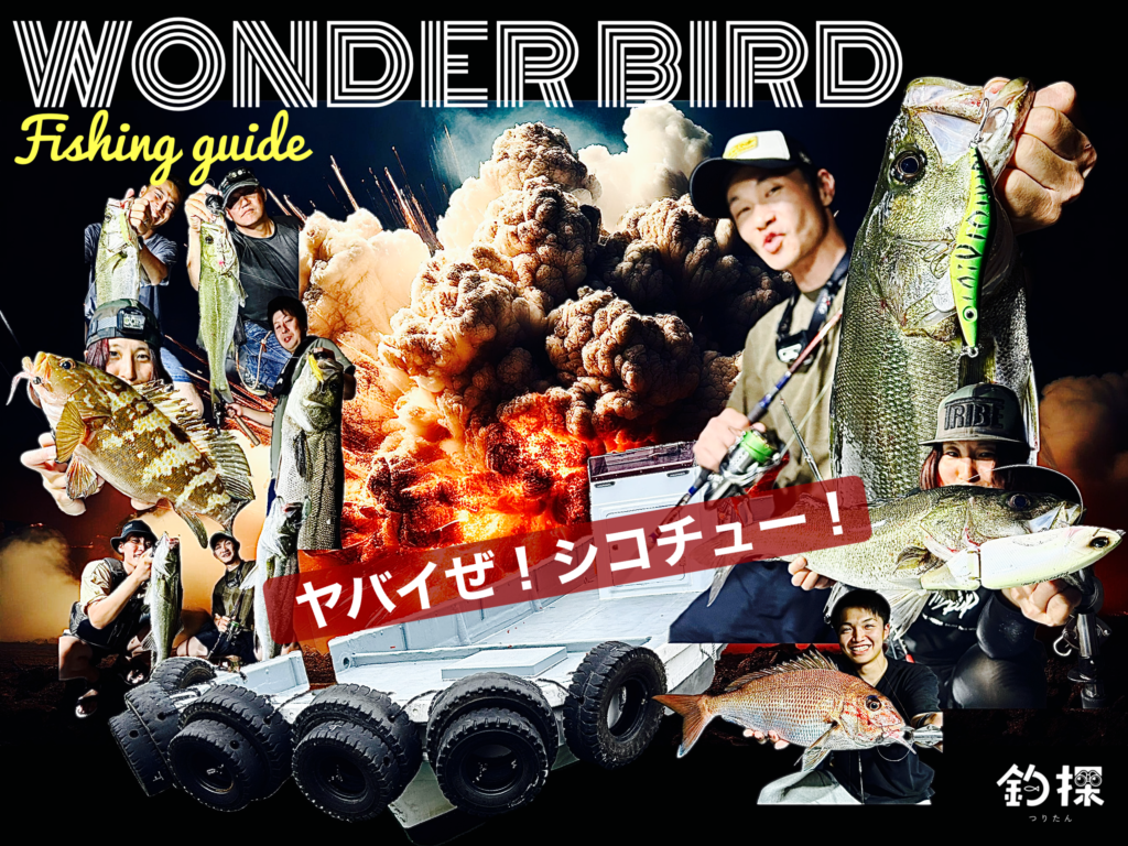 四国中央市から出船する遊漁船「ワンダーバード」です。出船場所からすぐのポイントに豊富な魚影があり、年中狙えるシーバスやアコウなどが人気のターゲット。陽気な船長と一緒にターゲットを追い回そう!